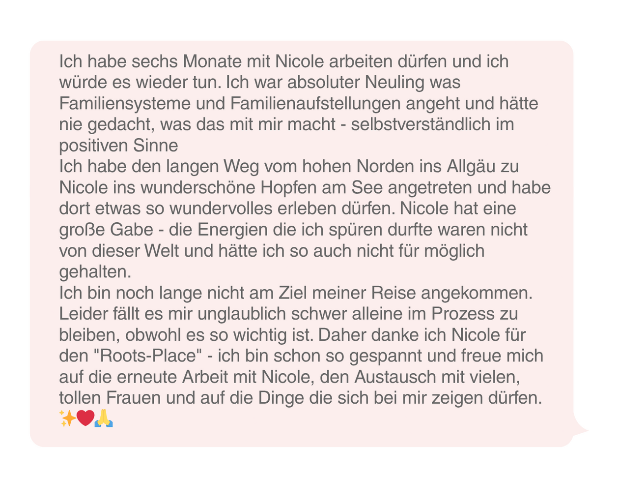 Kürzlich durfte ich vor über 100 Frauen meine Herzensarbeit vorstellen – eine klare Erkenntnis: Viele verstehen noch nicht, welches Potenzial in Familienaufstellungen steckt und wie friedlich das Leben wird, wenn man diese Dynamiken nutzt.Eine Klientin sagte begeistert „Nicole, von dir sollte es eine Flatrate geben!“ –